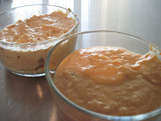 Cheesy tomato bisque is another favorite that practically doesn't need a recipe. Two cans of whole tomatoes, 1 cup of chopped onions, garlic powder, sugar, salt, pepper, and (quite a bit of) garlic powder. To this I added cream cheese and small cubes of cheddar. I used my immersion blender to make it smooth. Rave reviews from Zach who enjoyed dipping pretzels in it. Ms. T always makes breadsticks with this soup, but I didn't have time last night. I'm going to try next time though! I might also try adding some plain yogurt next time instead of all the cheese, as my stomach is a bit upset from all the unbridled dairy I've been consuming.